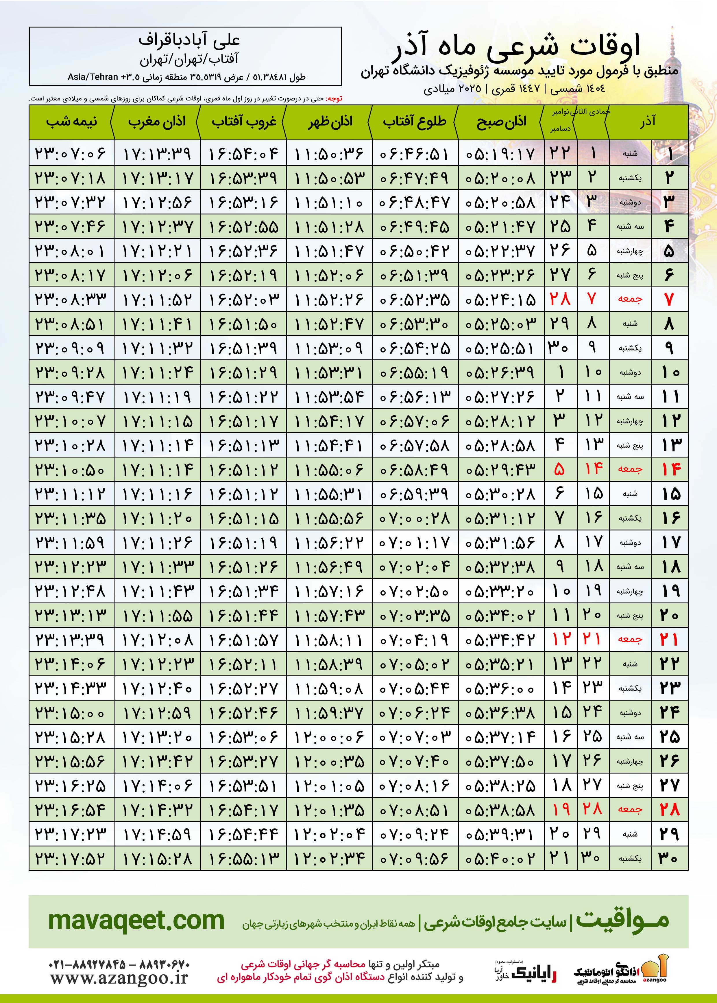 دانلود اوقات شرعی آذر ٠٤ - ١٤٠٤ روستای علی آبادباقراف