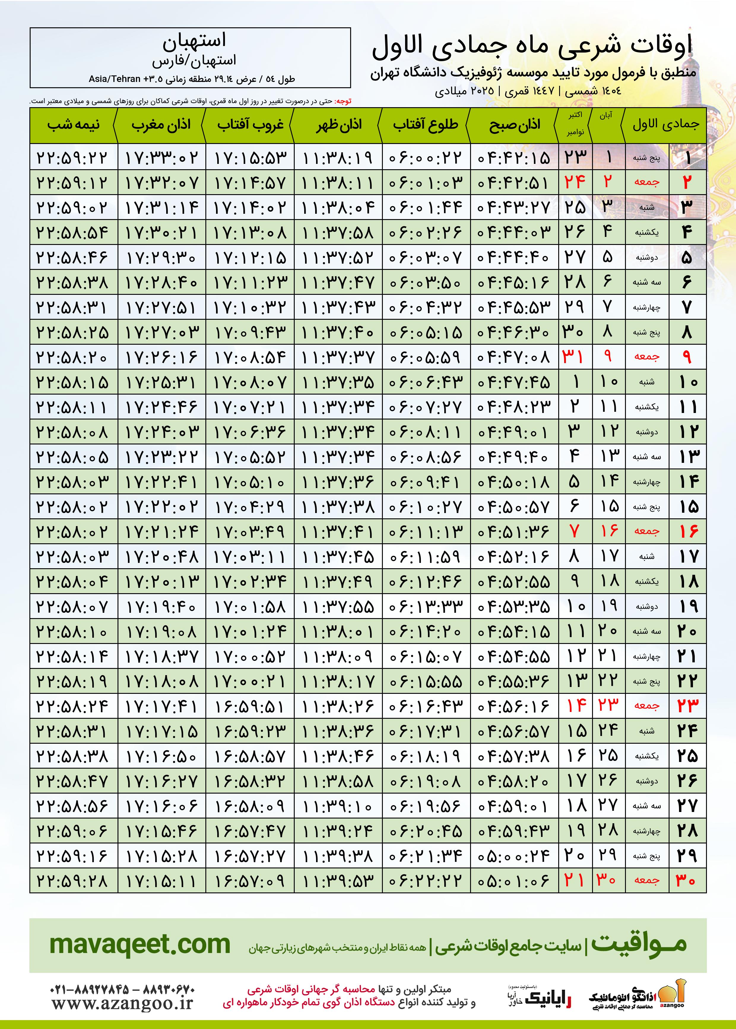 دانلود اوقات شرعی ماه جمادی الاول ١٤٤٧ هـ.ق