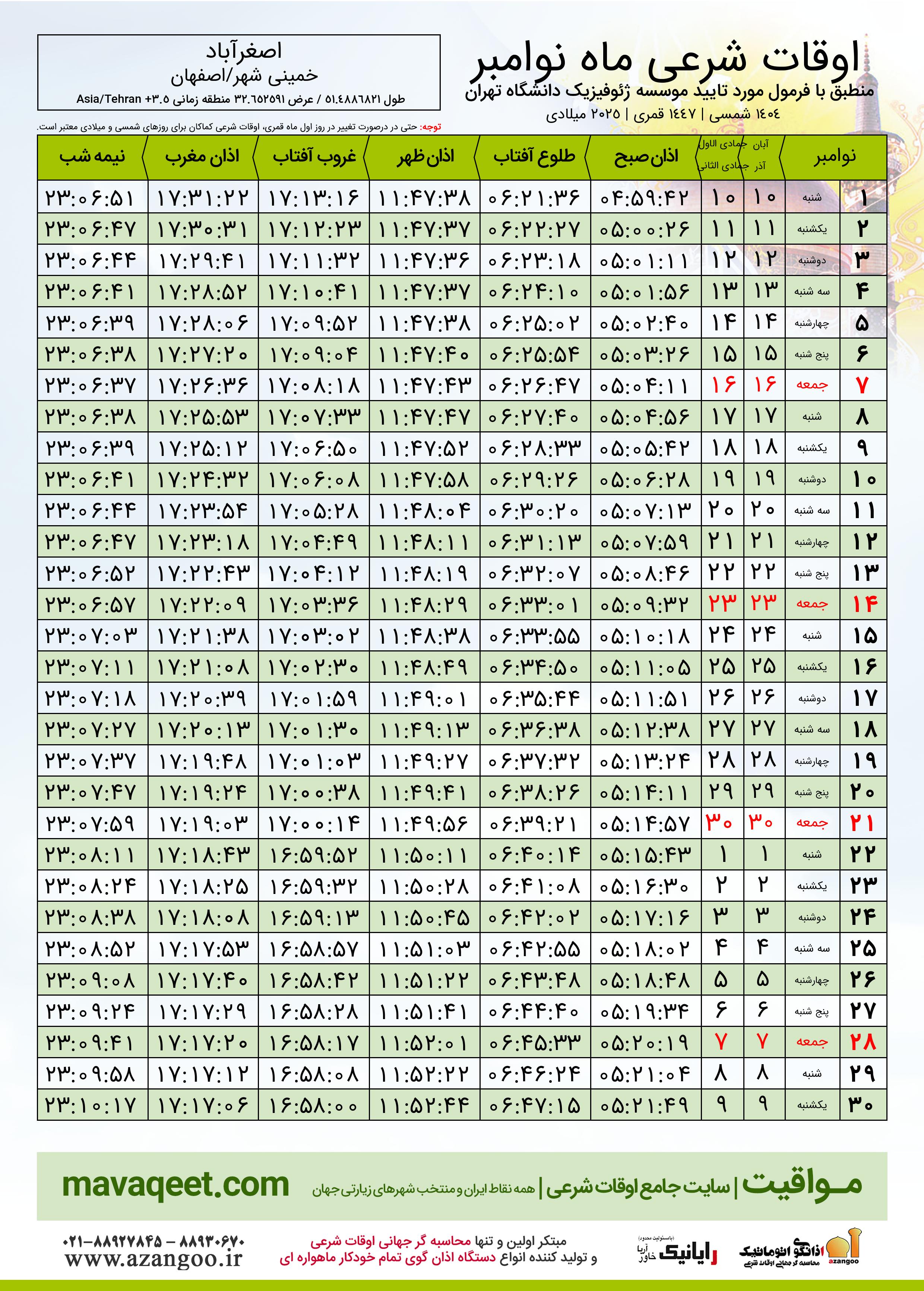 جهت نمایش تصویر جدول اوقات شرعی جدول اوقات شرعی نوامبر ٢٠٢٥ میلادی شهر اصغرآباد شهر اصغرآباد در اندازه