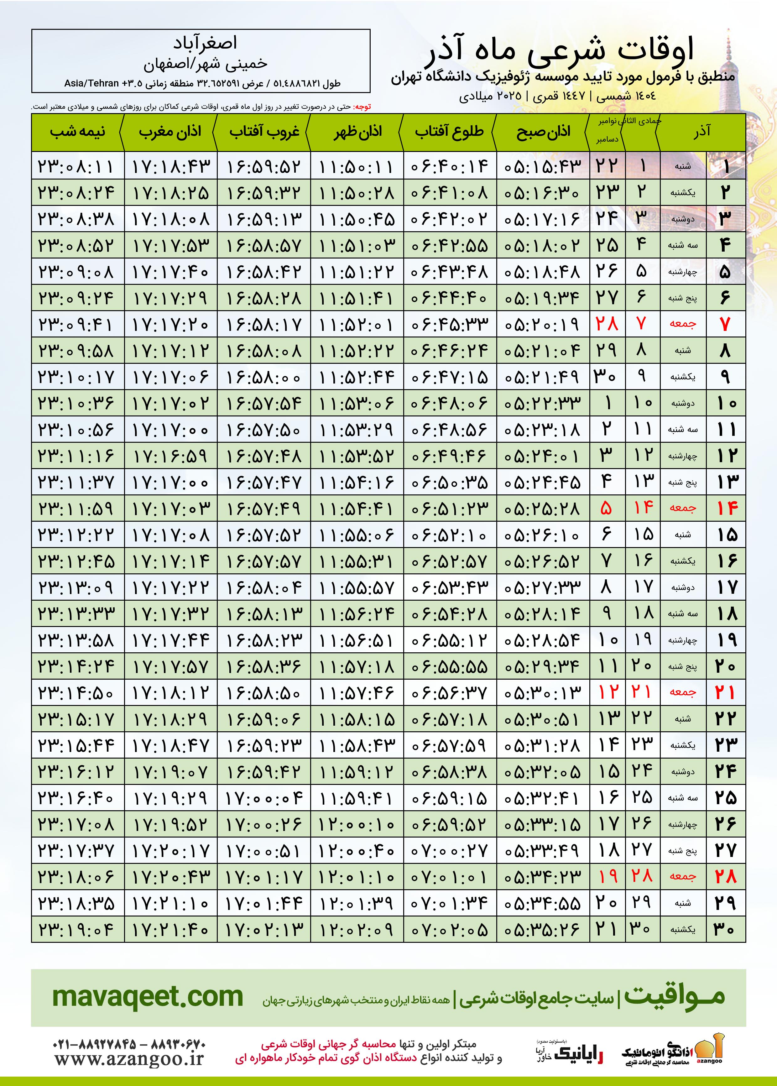 دانلود اوقات شرعی آذر ٠٤ - ١٤٠٤ شهر اصغرآباد