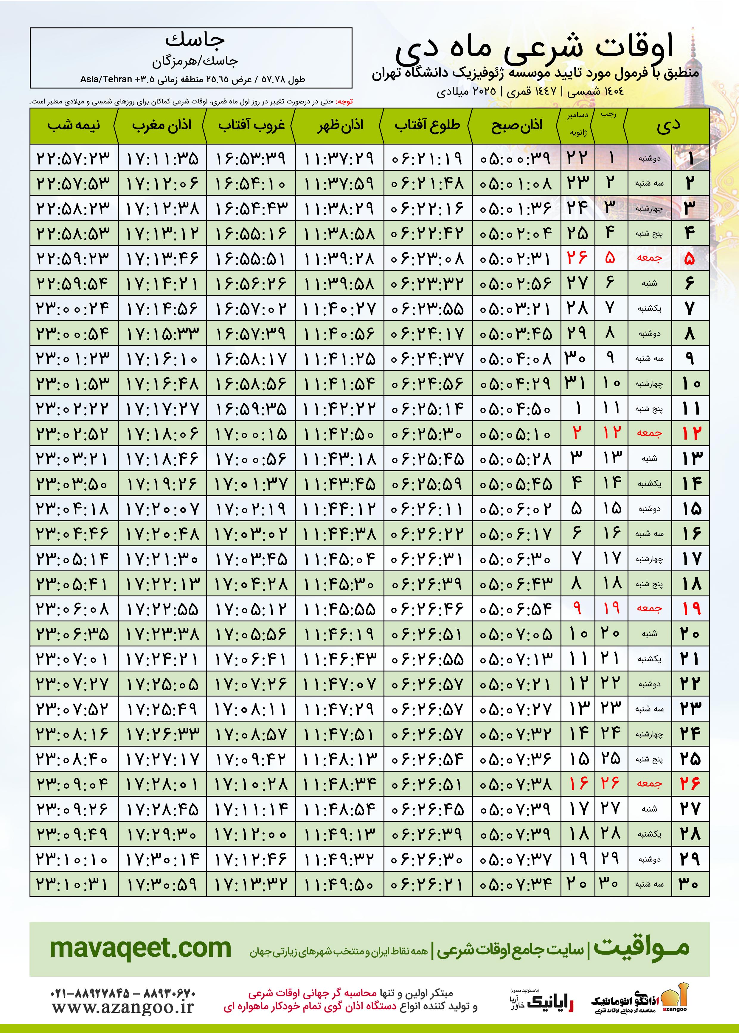 دانلود اوقات شرعی دی ٠٤ - ١٤٠٤ شهر جاسک
