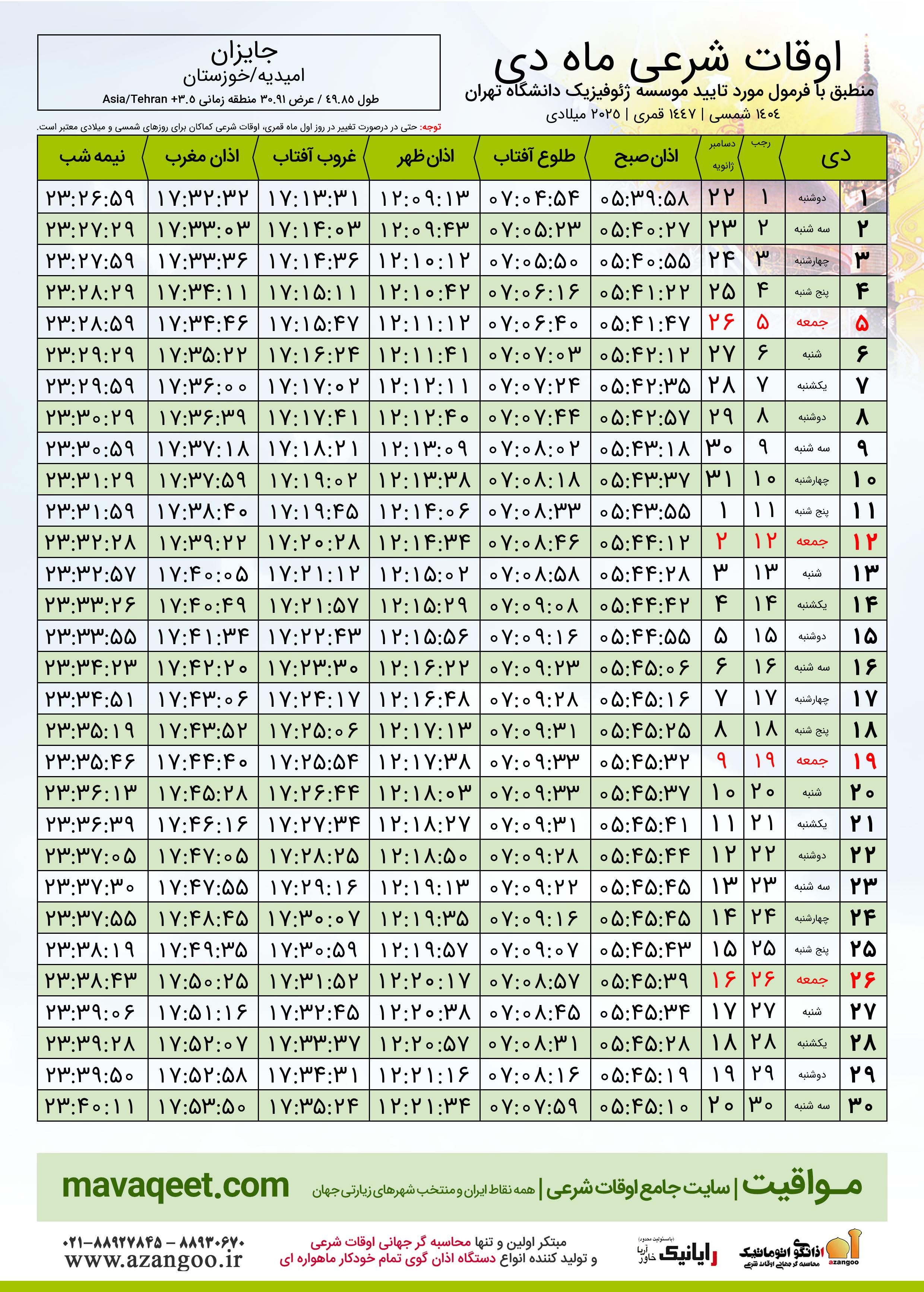 دانلود اوقات شرعی دی ٠٤ - ١٤٠٤ شهر جایزان
