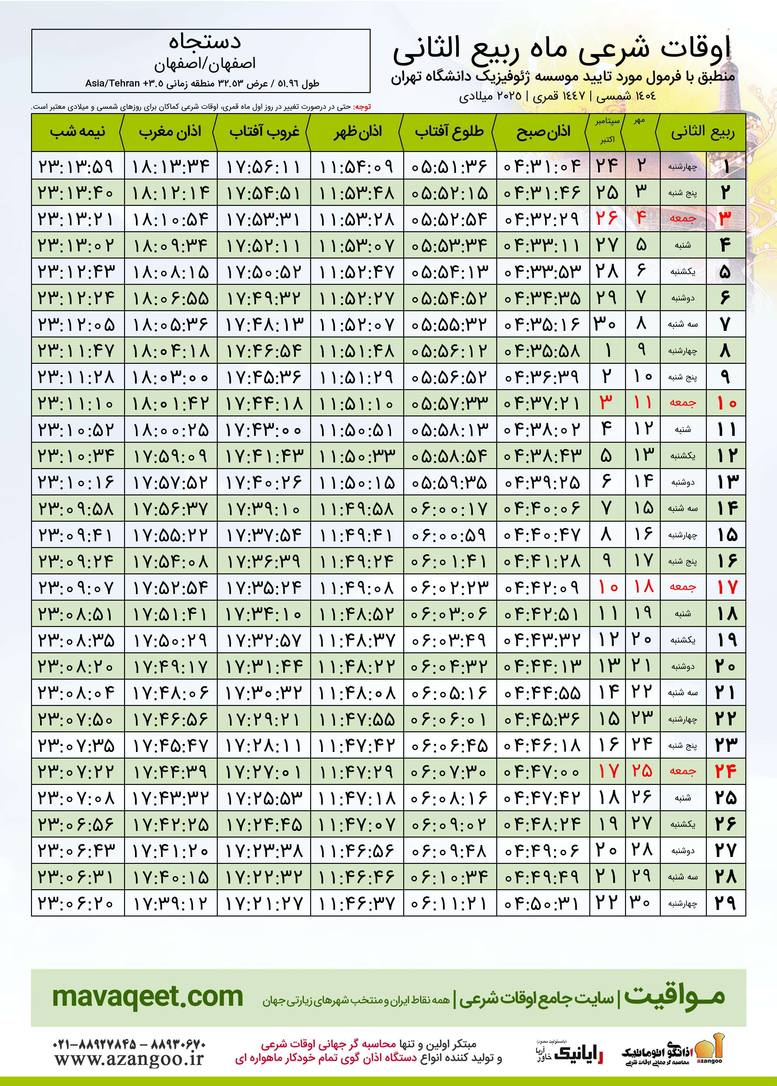 دانلود اوقات شرعی ماه ربیع الثانی ١٤٤٧ هـ.ق