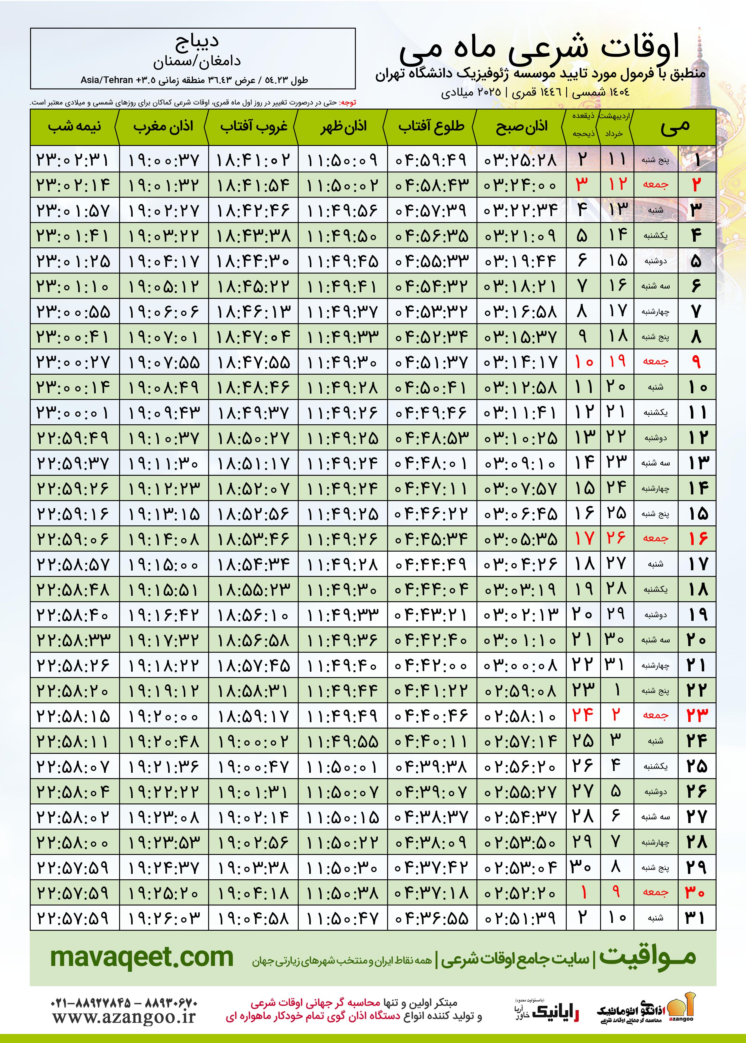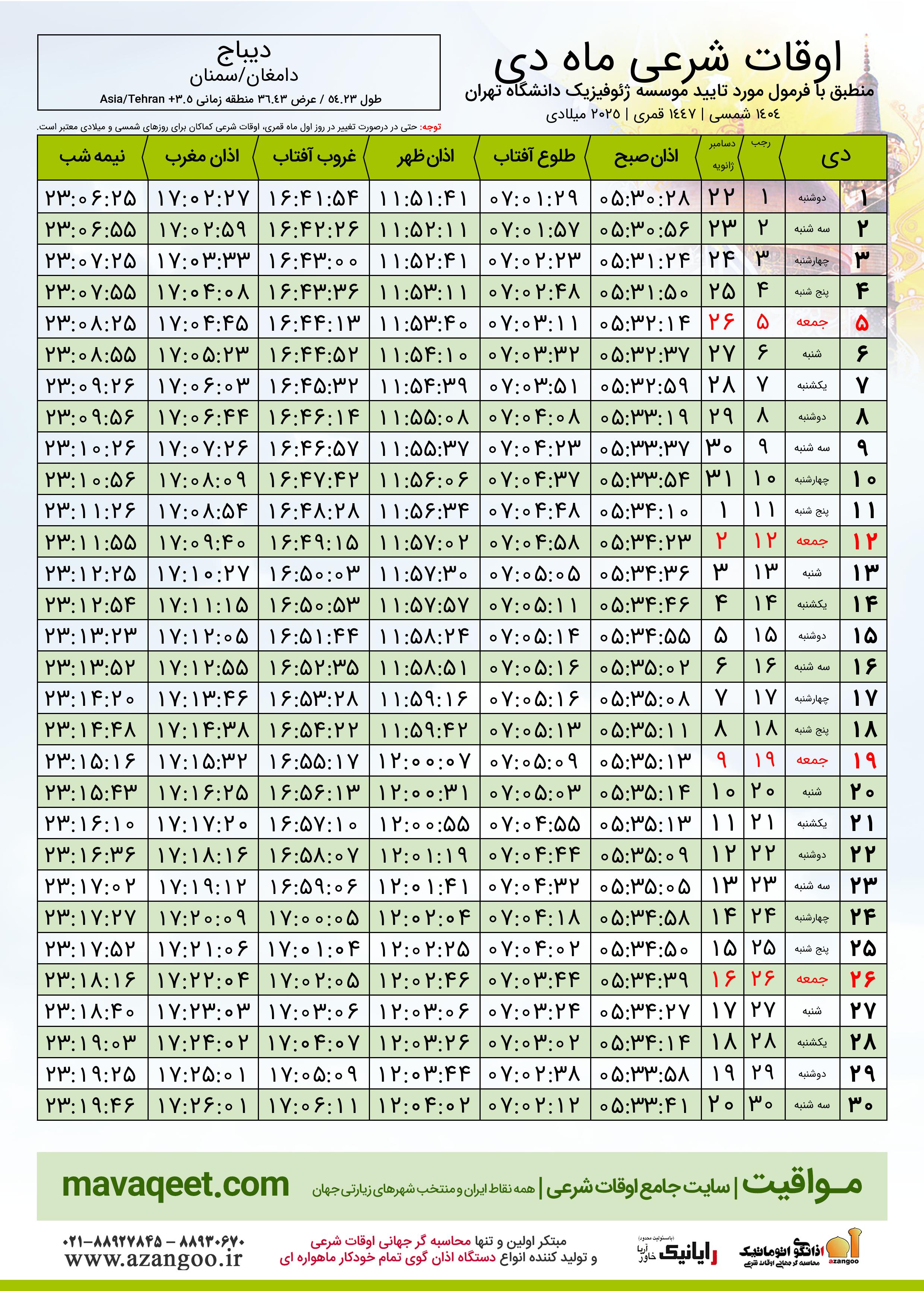 جهت نمایش تصویر جدول اوقات شرعی جدول اوقات شرعی دسامبر ٢٠٢٥ میلادی شهر دیباج شهر دیباج در اندازه
