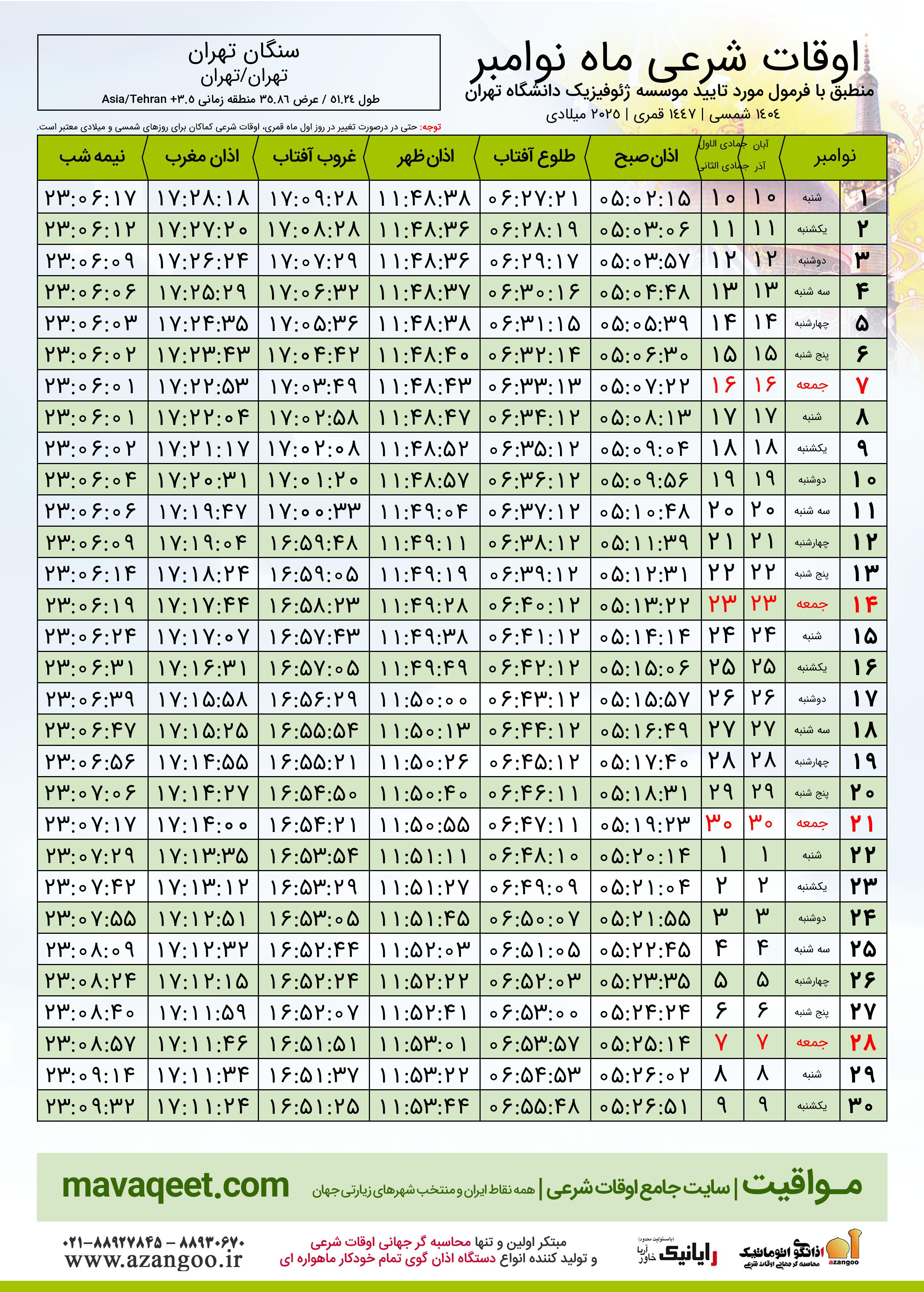 جهت نمایش تصویر جدول اوقات شرعی جدول اوقات شرعی نوامبر ٢٠٢٥ میلادی شهر سنگان تهران شهر سنگان تهران در اندازه