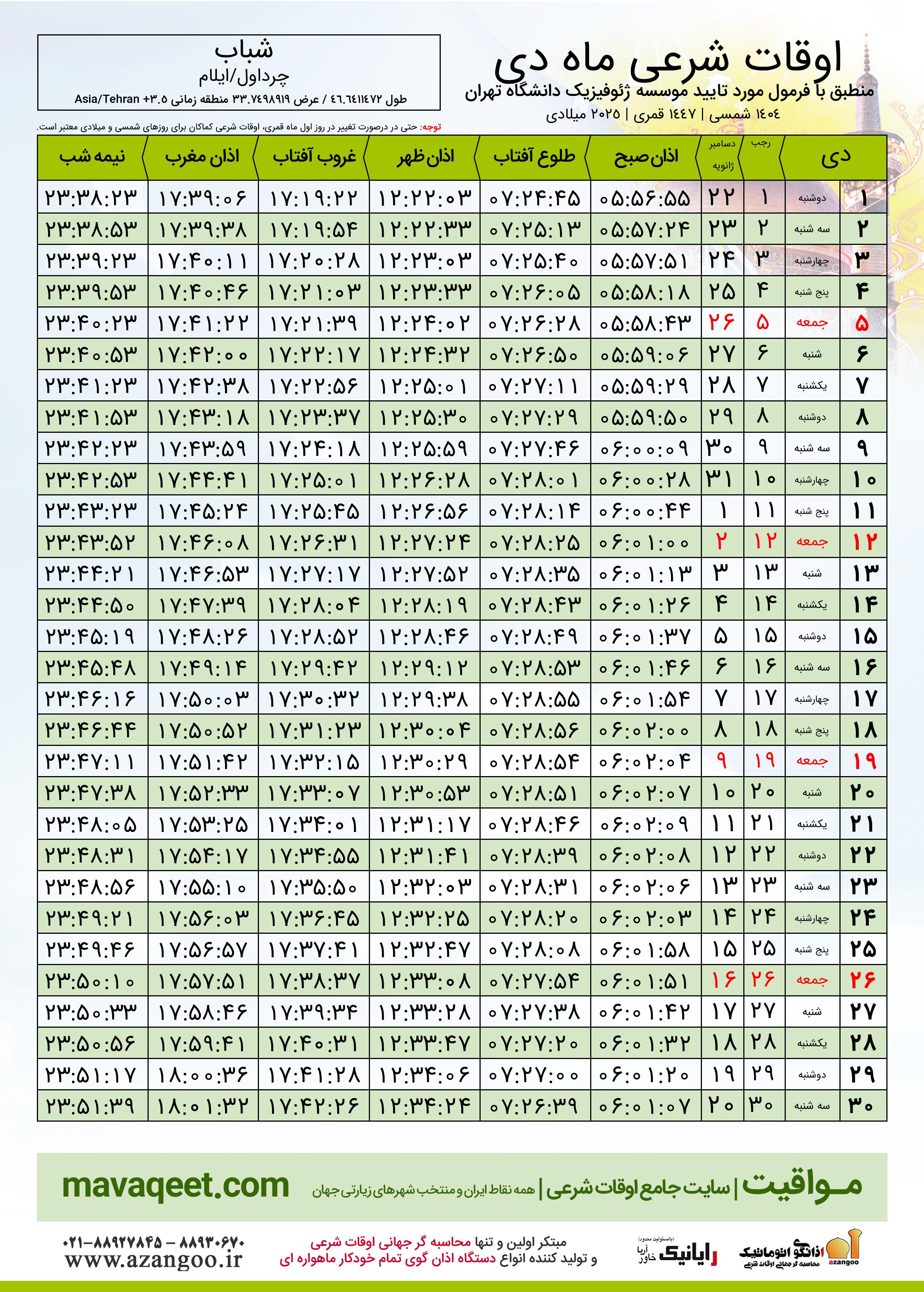 دانلود اوقات شرعی دی ٠٤ - ١٤٠٤ شهر شباب