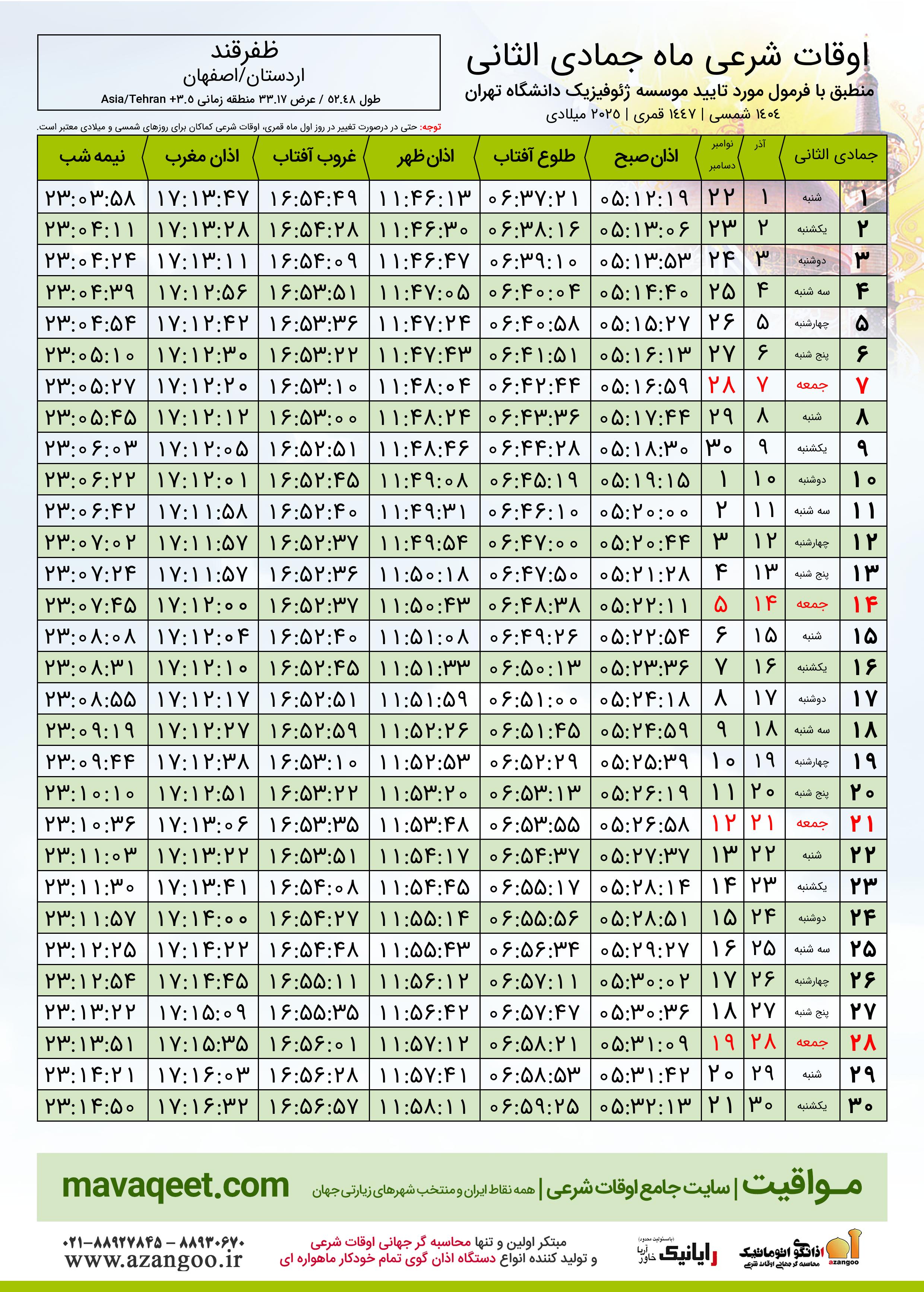 اوقات شرعی ماه جمادی الثانی ١٤٤٧ هـ.ق شهر ظفرقند بر