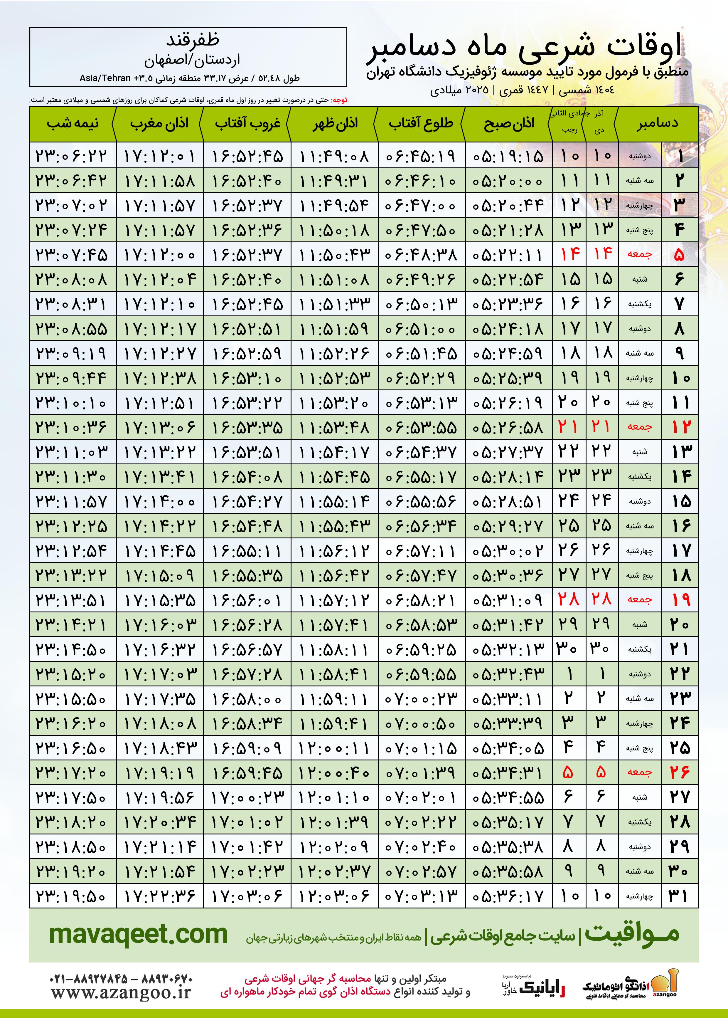 دانلود اوقات شرعی دسامبر ٢٠٢٥ شهر ظفرقند