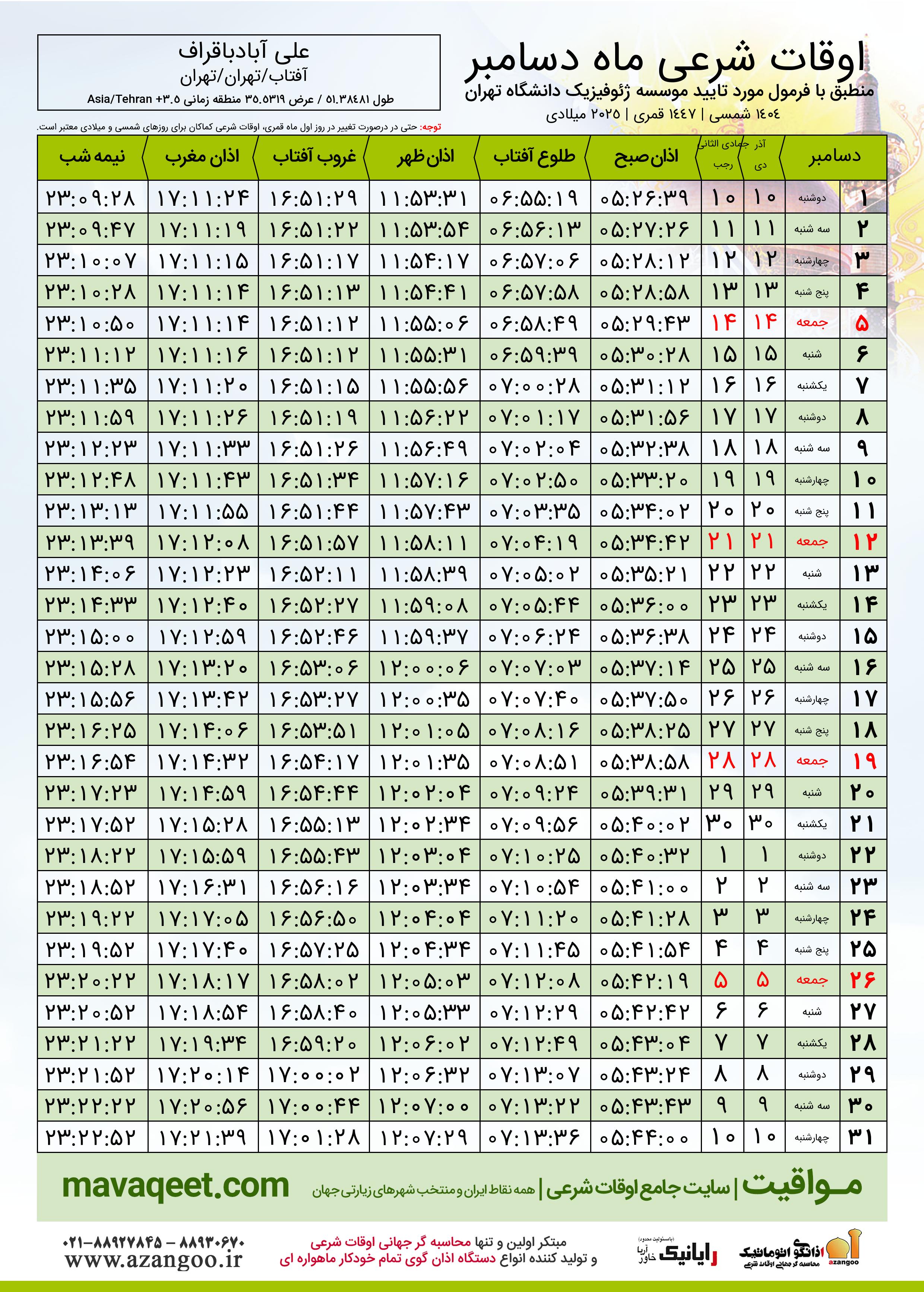 اوقات شرعی دسامبر ٢٠٢٥ روستای علی آبادباقراف + دانلود