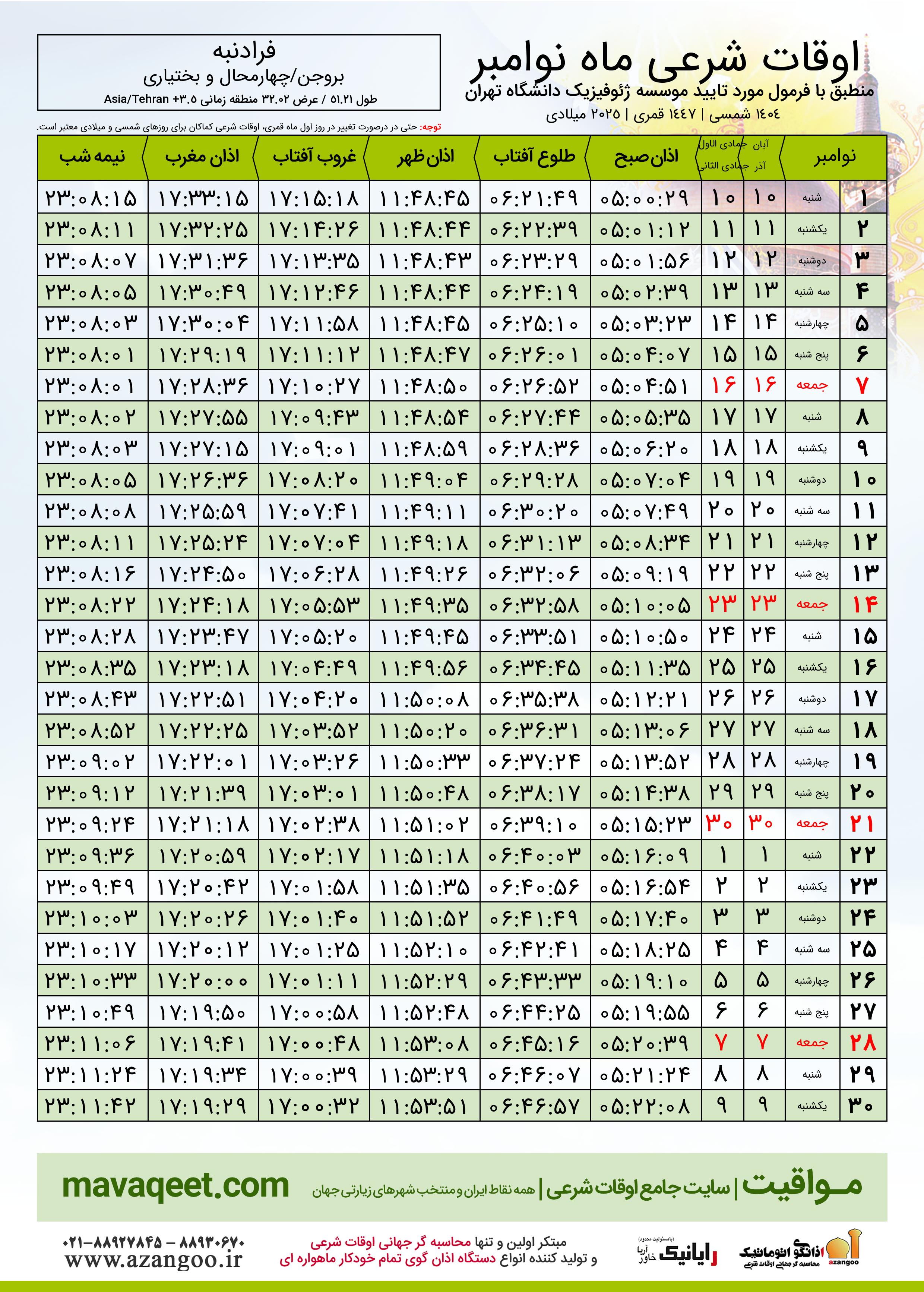 دانلود اوقات شرعی نوامبر ٢٠٢٥ شهر فرادنبه