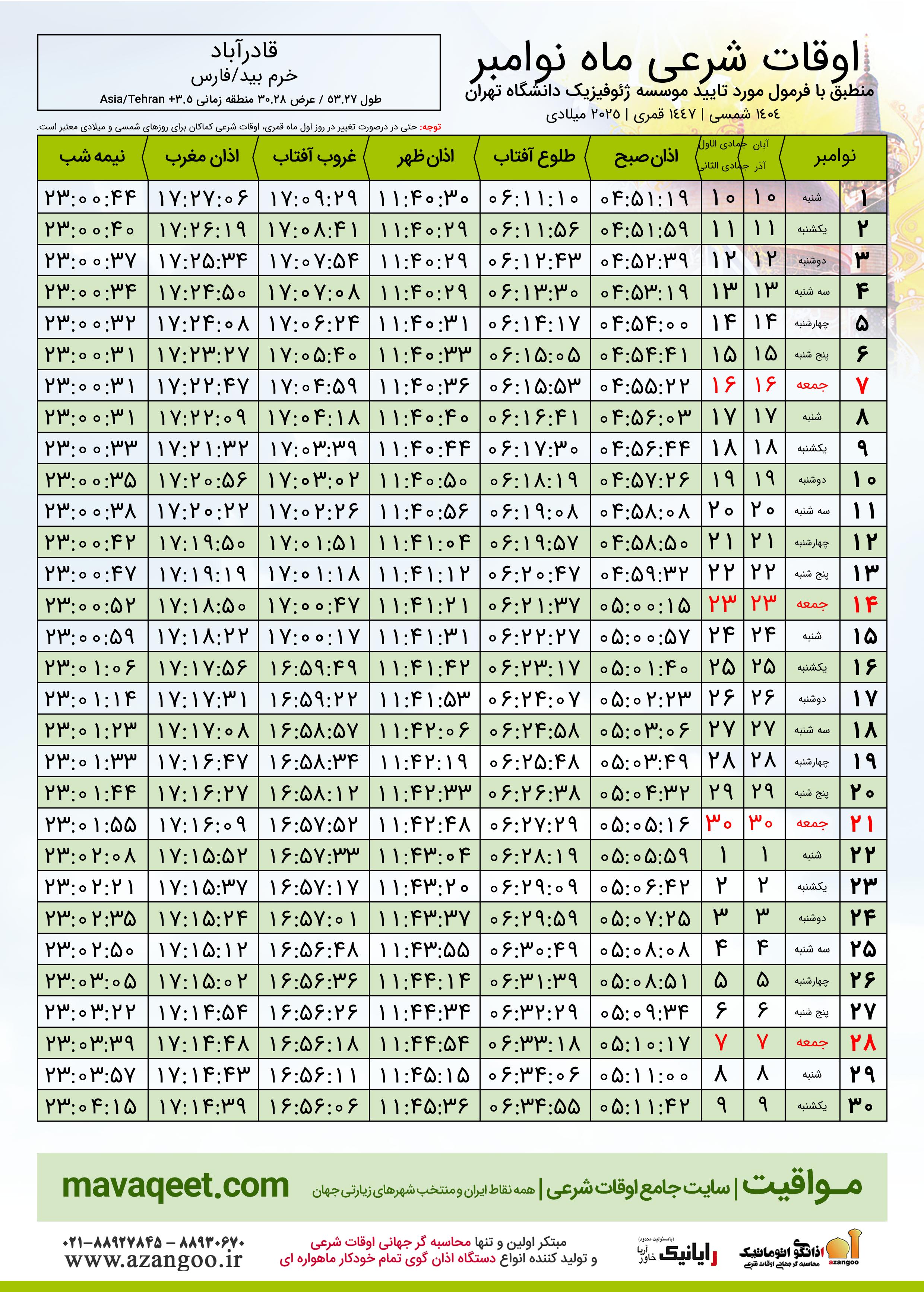دانلود اوقات شرعی نوامبر ٢٠٢٥ شهر قادرآباد