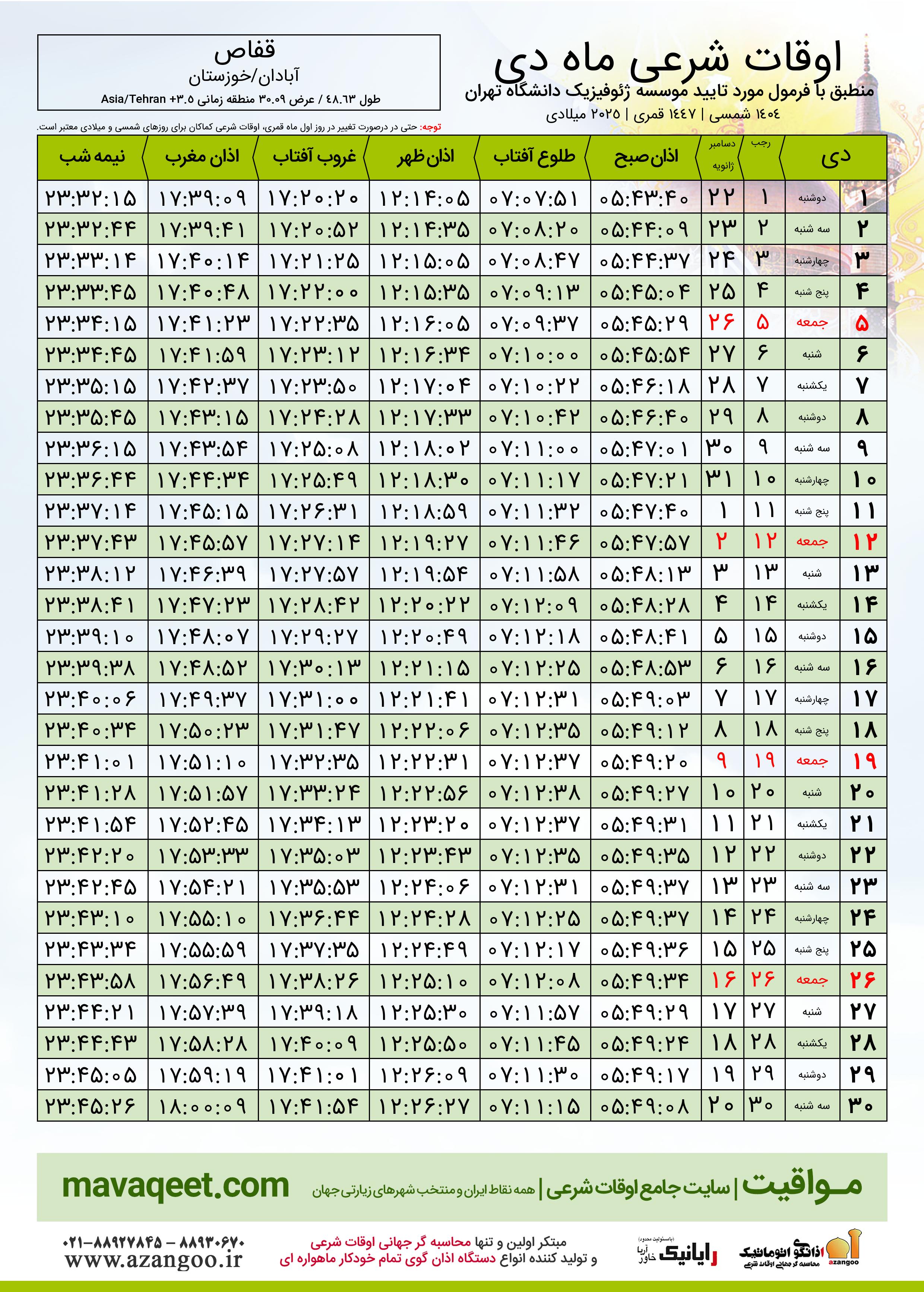 دانلود اوقات شرعی دی ٠٤ - ١٤٠٤ شهر قفاص