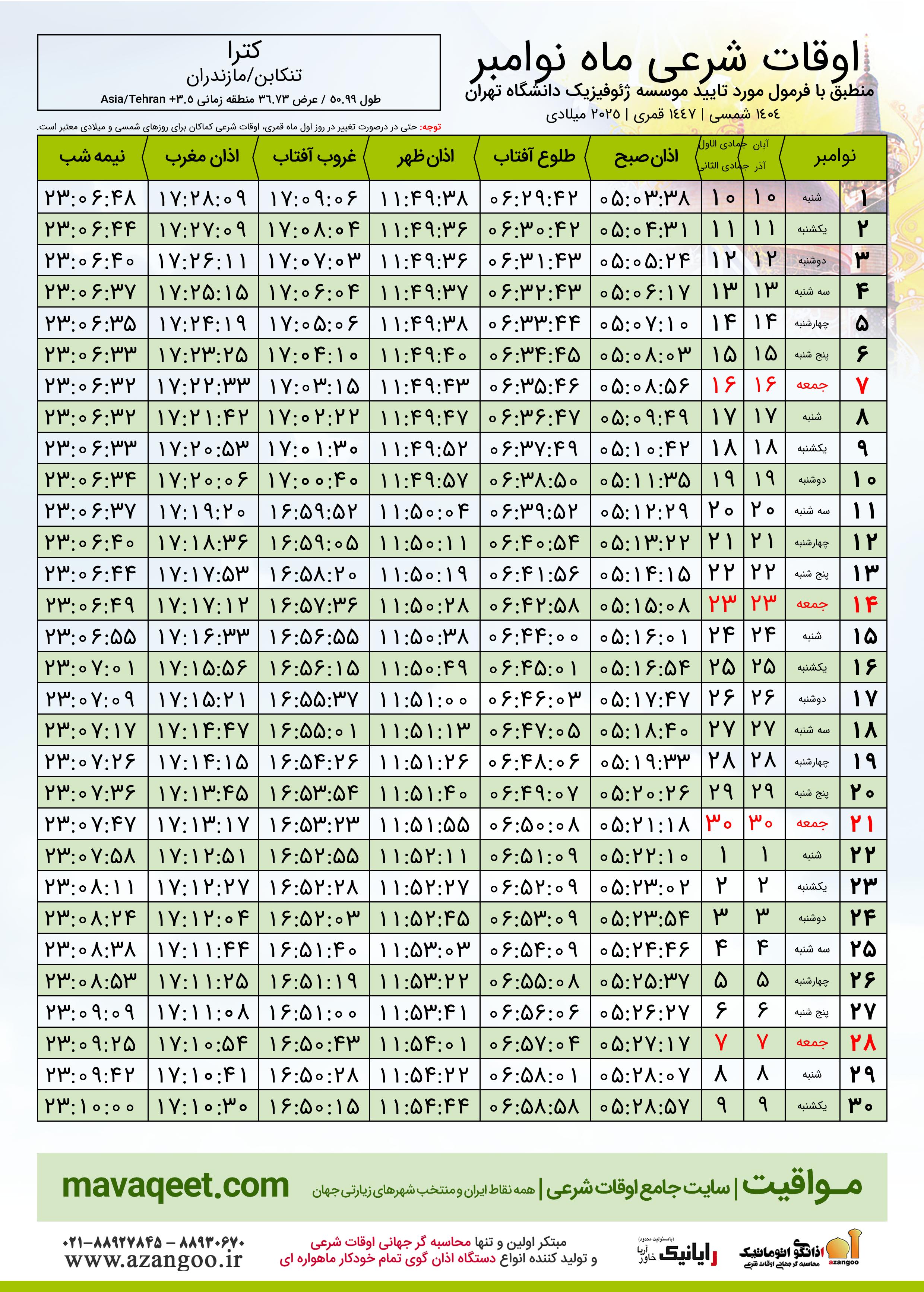دانلود اوقات شرعی آبان ٠٤ - ١٤٠٤ شهر کترا