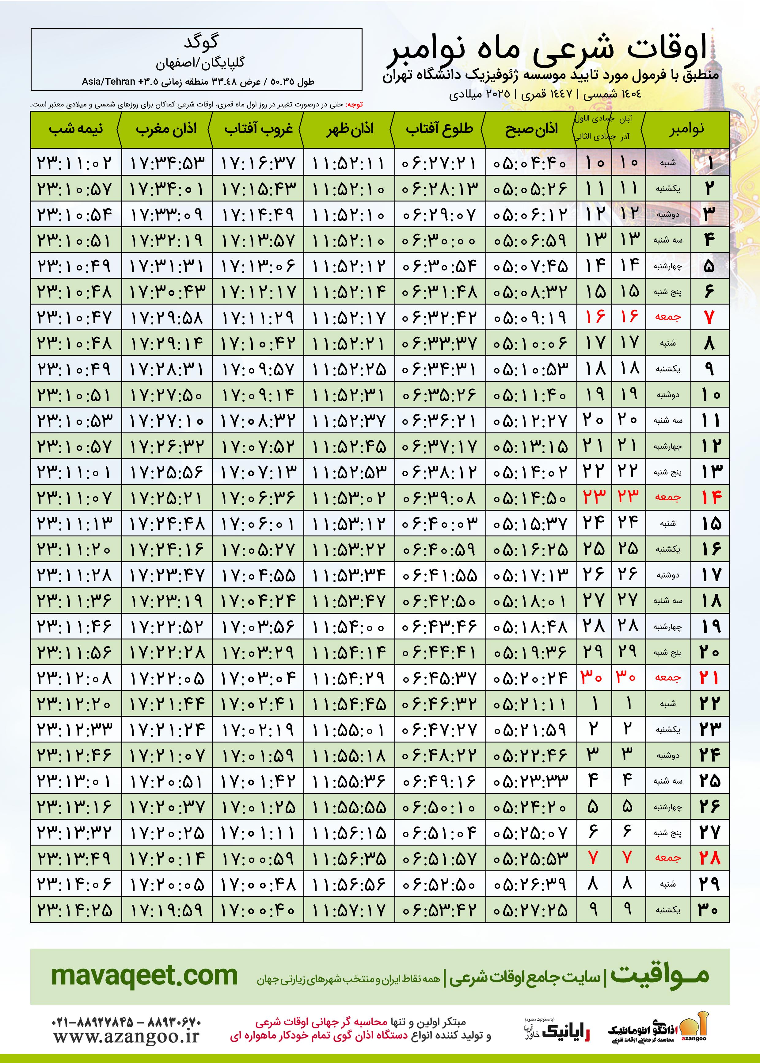 دانلود اوقات شرعی نوامبر ٢٠٢٥ شهر گوگد
